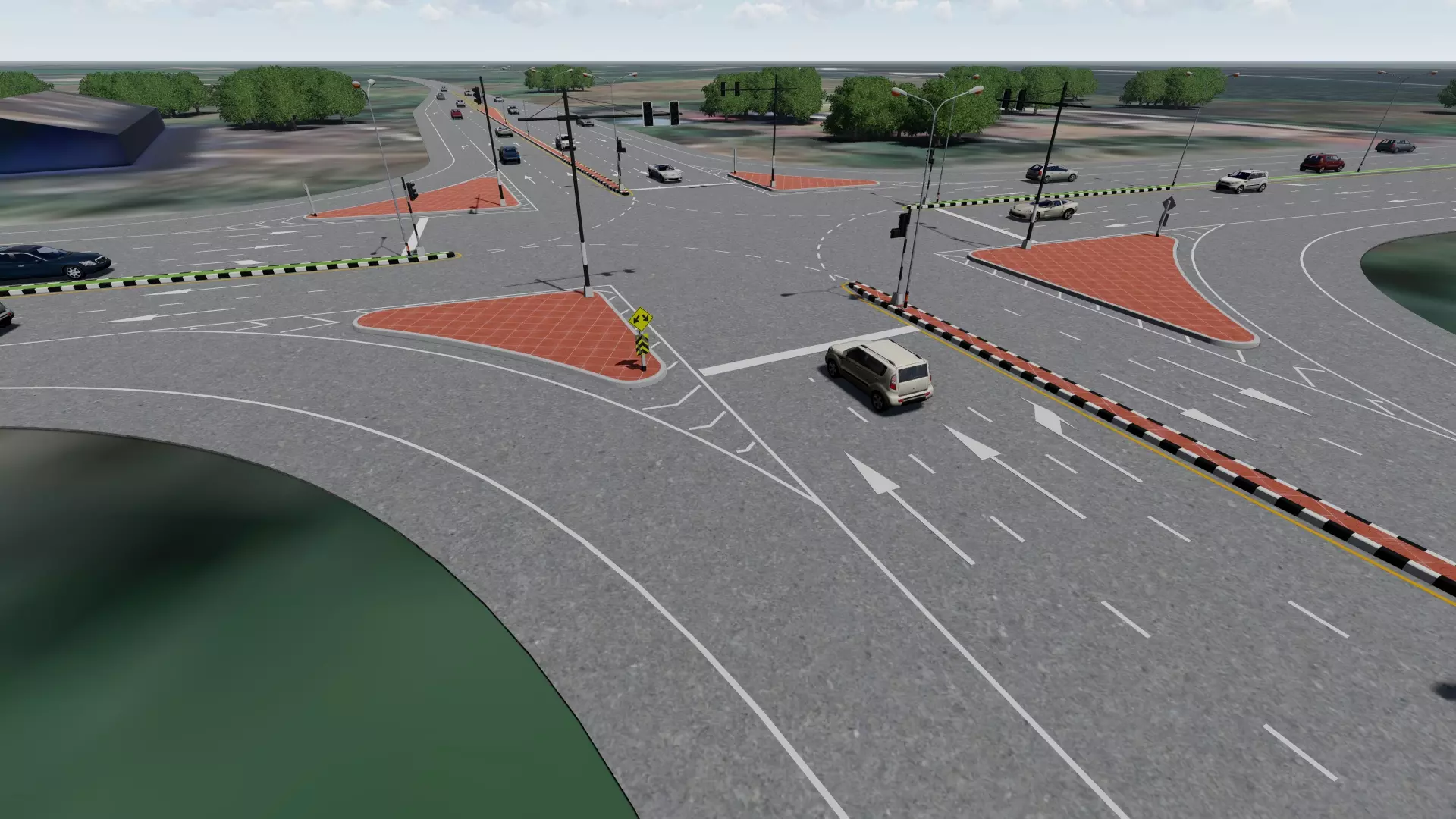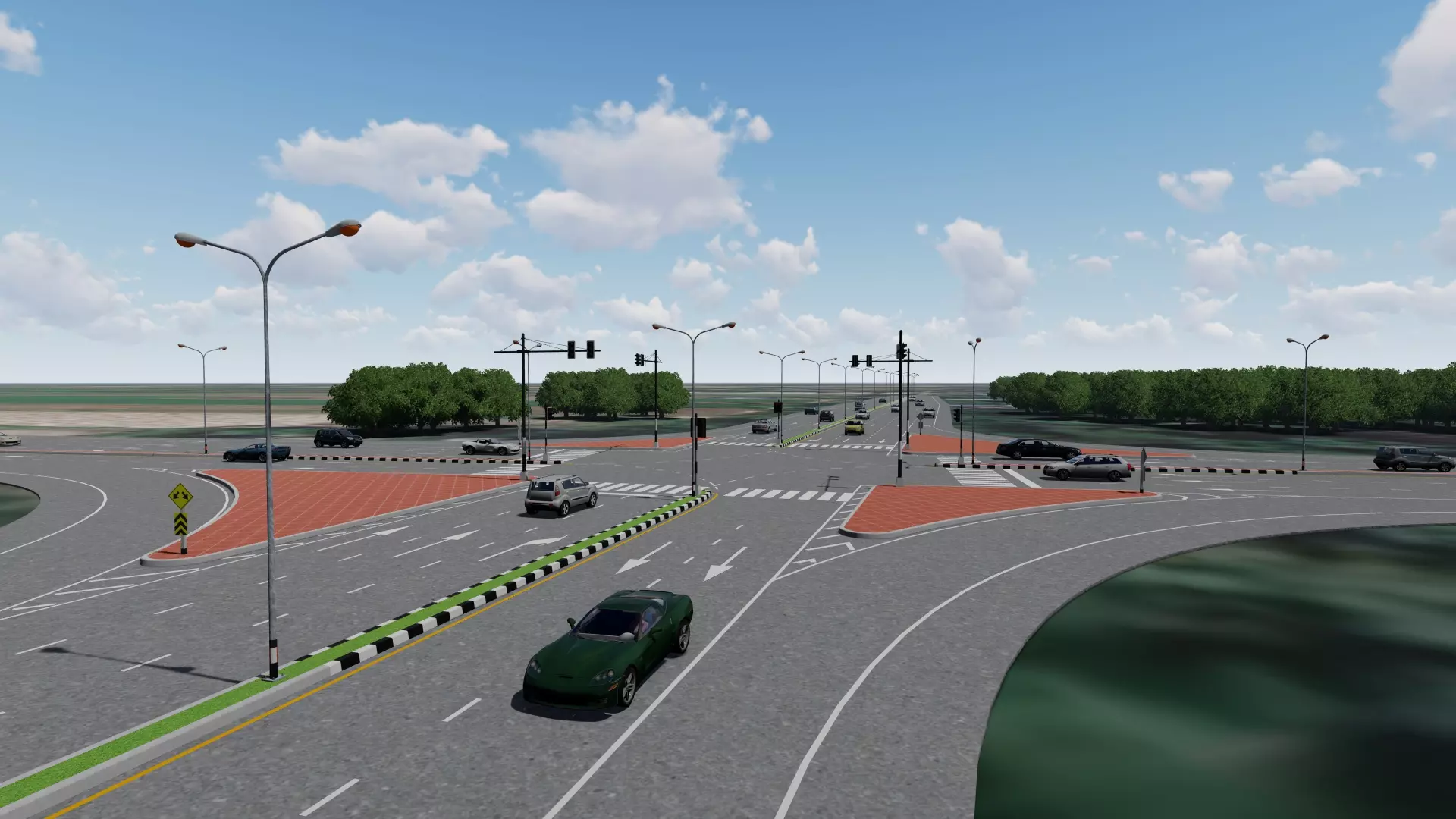 Controlling the construction of a 6-lane asphalt concrete road, a parallel reinforced concrete bridge over an intersection, totaling 4 lanes, 10.50 meters wide on each side, 382.00 meters long.
