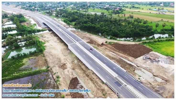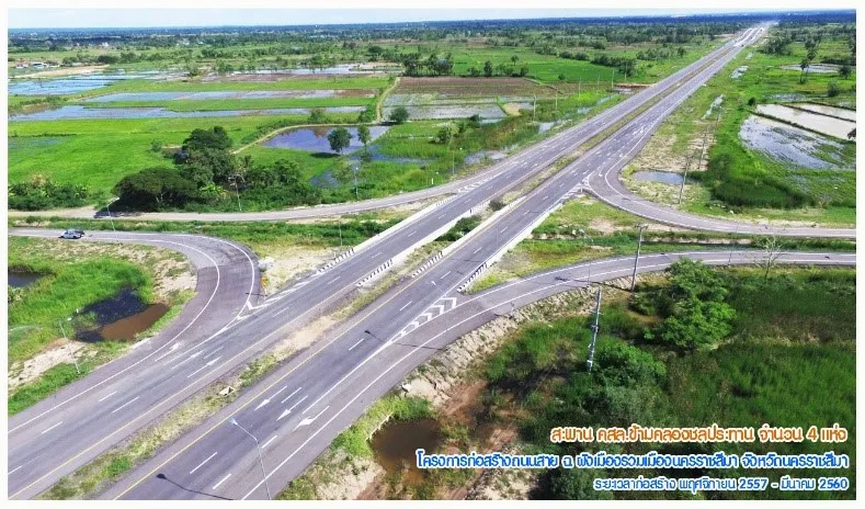 Supervise the construction of a 4-lane asphalt concrete road, construct a 4-lane reinforced concrete bridge across Lam Buribun Canal, Old Lam Takong Canal and New Lam Takong Canal, construct 2 U-turn points and improve 2 intersections, and other works such as sidewalks, traffic signs, safety facilities, and tree planting.