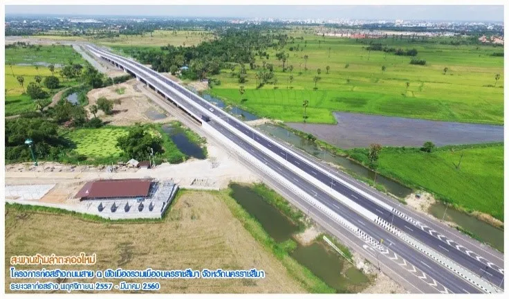 Supervise the construction of a 4-lane asphalt concrete road, construct a 4-lane reinforced concrete bridge across Lam Buribun Canal, Old Lam Takong Canal and New Lam Takong Canal, construct 2...